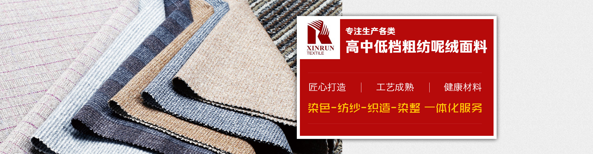 上海鑫润纺织品有限公司是一家从事开发,生产,销售为一体的毛纺面料公司,公司生产各类高中低档粗纺呢绒面料,并下辖控股毛纺厂3家,拥有先进的生产设备和的管理体系,不仅在国内市场享有良好地信誉,而且产品远销美国,欧洲,俄罗斯,韩国,日本等不同国家,赢得了国外市场的一致好评。凭借优良的品质,良好的信誉,我公司还是ZARA,H&M,C&A,JACK&JONES,MANGO,TARGET,PROMODE,ORSAY等国外知名品牌的供应商。
